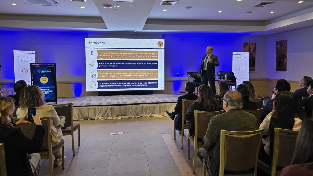 Durante la presentación, el Consejero del Banco Central destacó que la economía en Chile evolucionó según lo previsto en los últimos meses, con una expansión coherente con su potencial a fines de 2025 y una inflación en febrero por debajo del 3%. Sin embargo, la guerra en Medio Oriente ha elevado los precios de la energía y generado incertidumbre económica global y local. Cowan indicó que se espera un alza importante en la inflación en el segundo trimestre, debido a los mayores precios internacionales de los combustibles. Mientras que el crecimiento del PIB para este año se reduce a 1,5-2,5%, influenciado por el escenario internacional, el ajuste del gasto fiscal y factores de oferta en sectores como la agroindustria y la minería.
